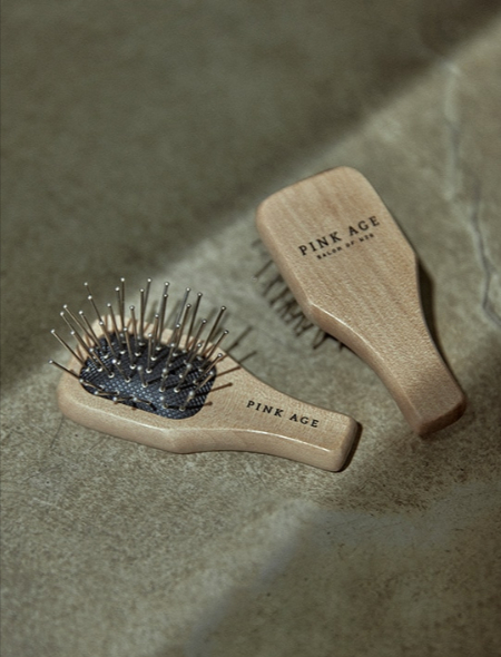 金属製のブラシで製作され、ヘアスタイルを整える際の静電気を抑え、